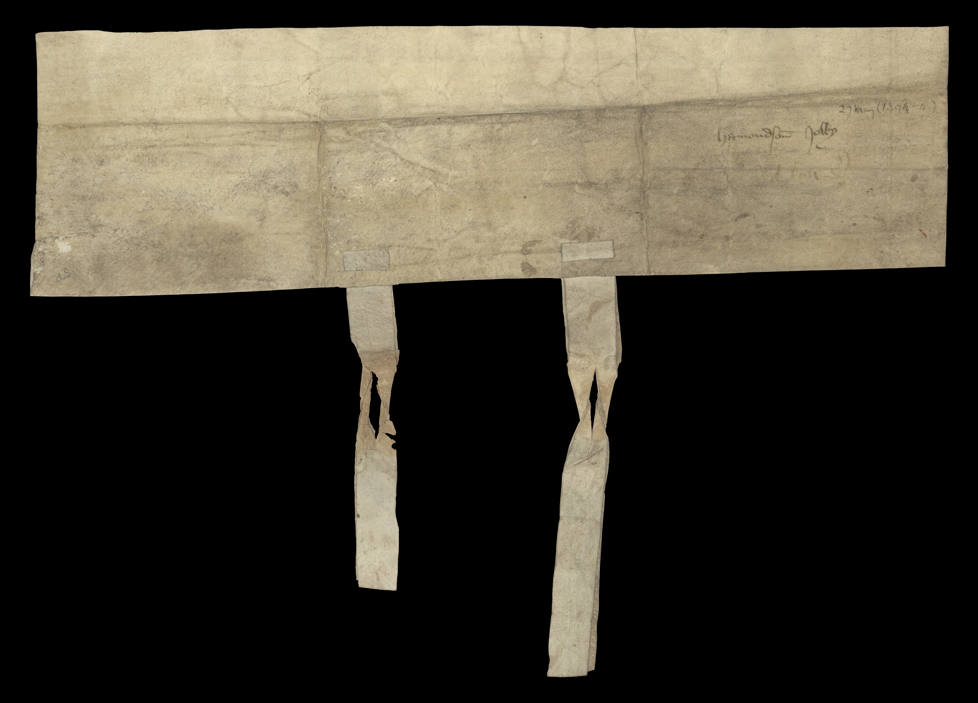 Grant by Acrisius de Whasehow and Agnes, his wife, of a messuage and lands in Jolby in Croft on Tees, 1394