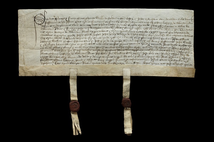 Thomas Webbe of Peldon, Essex, and John Marchant the elder of the same vill have demised to Christian, the wife of Gregory Synnewe, late the wife of Thomas Lethyng of Adburton, now deceased, in fulfilment of the last will of the said Thomas Lethyng, 2 crofts of land called Peetcrofts lying in the vills of Adburton and Fyngrynghoe in Northpete, with all rents and services, and lying between the land of the Rectory of Adburton on the west side and the land formerly of Luke Mathewe on the east side, 1 head thereof abutting on the land formerly of John Clerk, afterwards of John Hervy of Leyre de la Hay, to the north and the other head thereof abutting on the land called Rokelond to the south, which crofts of land we lately had with the aforesaid Thomas Lethyng, William Preston, Thomas Vaus and John Tye of Langenhoe the elder, now deceased [plural], of the gift and feoffment of John Webbe and Philip Lauenham, as contained in a certain charter made to use thereof, to hold the 2 crofts of land [etc] to Christian for her life, so that after the decease of Christian the 2 crofts shall remain to Thomas Lethyng, son of the aforesaid Thomas Lethyng of Adburton, John Gale the younger, William Gale the elder and John Cole the elder, their heirs and assigns, of the chief lords for ever, to the use of the aforesaid Thomas Lethyng, son of Thomas Lethyng, his heirs and assigns for ever. In witness whereof we have put our seals. Given at Adburton on 14 February, 5 Henry VIII [1514].