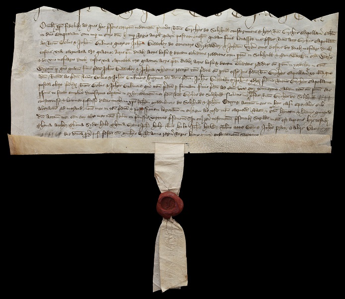 Richard Birches of Solihull', kinsman and heir of Richard Birches, chaplain. Whereas in the court of Henry IV late king a certain fine was levied between the aforesaid Richard atte Birches, chaplain, and Richard Belne and John Bukmore, querents, and John Duddeley of Couentre wyrdrawer and Joan his wife deforciants [part of the fine (CP 25/1/290/59, number 28) is recited], and Richard Birches, chaplain, afterwards died and Richard Belne and John Bukmore, who held the tenements for their lives, demised them to certain persons in fee simple separately to my disinheritance, know that I Richard Birches of Solihull' have constituted John Middulmore of Solihull' and John Waryng' my attorneys in this case, to enter in my name into the tenements and take lawful possession to my use [etc]. In witness of which I have put my seal.