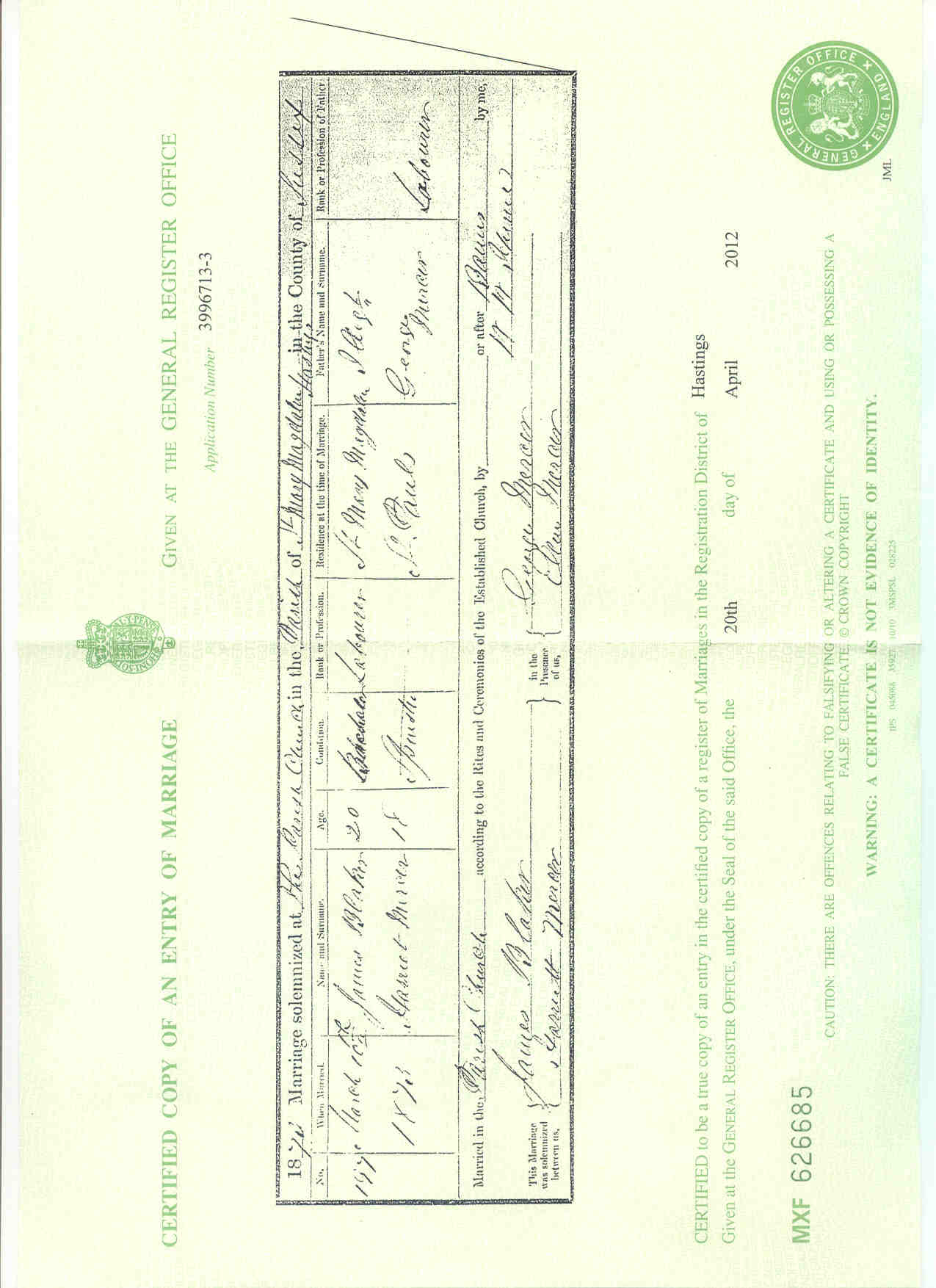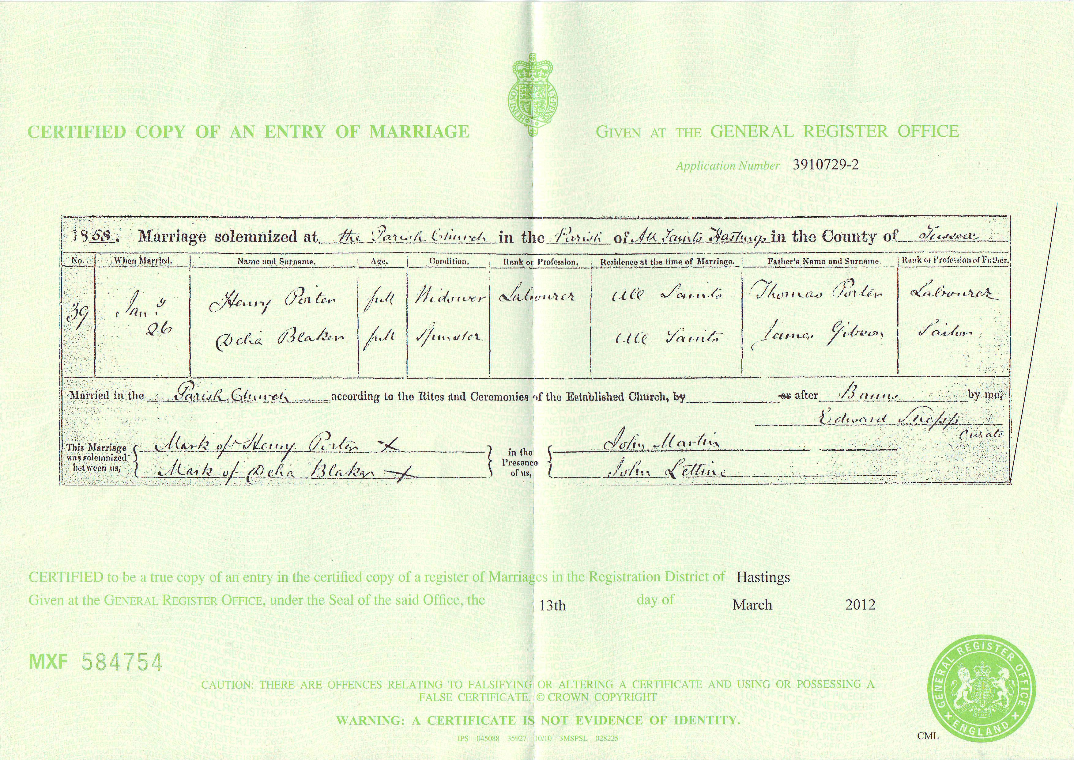 Marriage certificates: