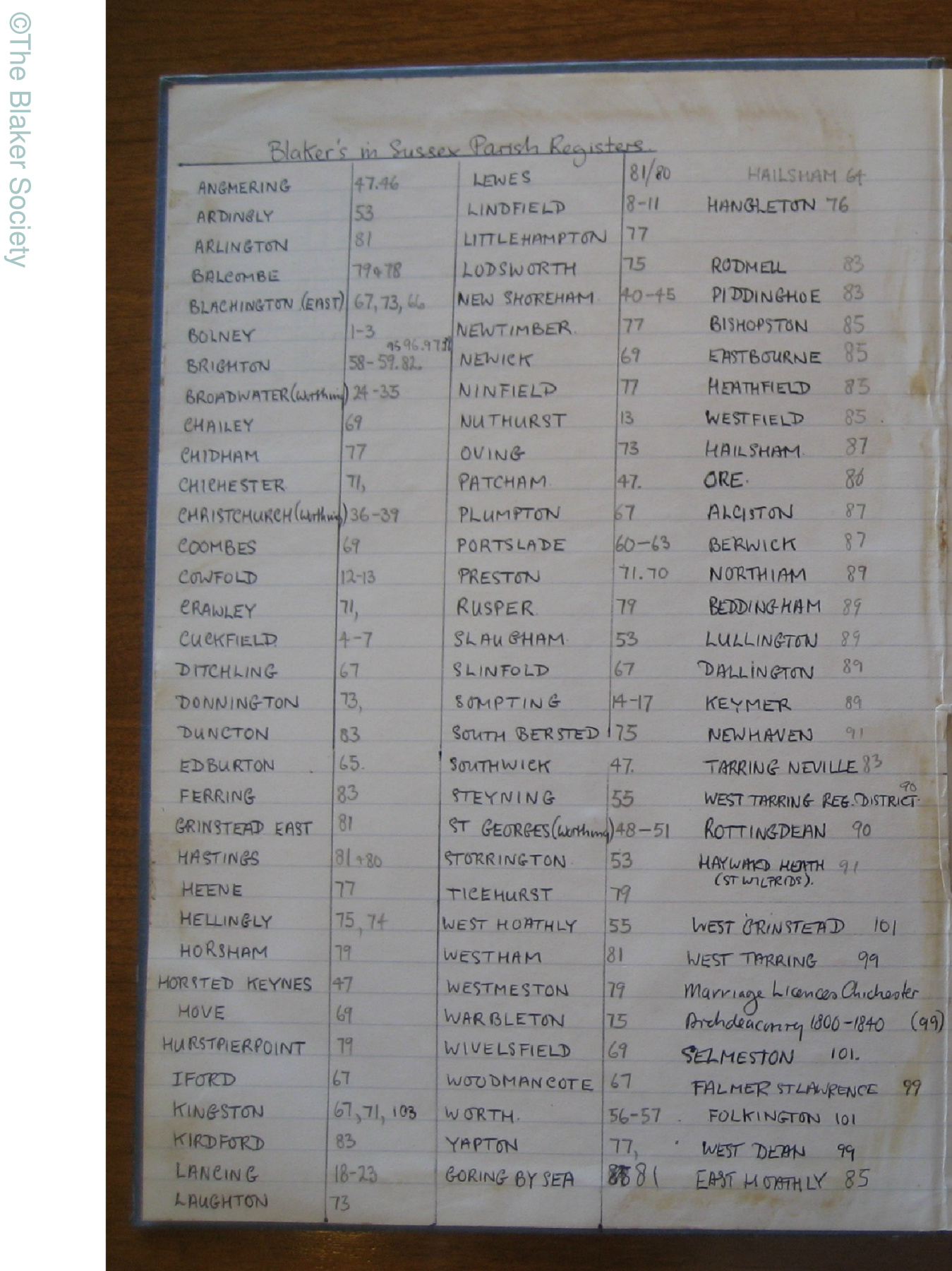 The files linked below contain photographs of handwritten notes of Blaker entries extracted by Roger Blaker from Sussex parish registers, together with extracts from Latter Day Saints indexes for other counties.