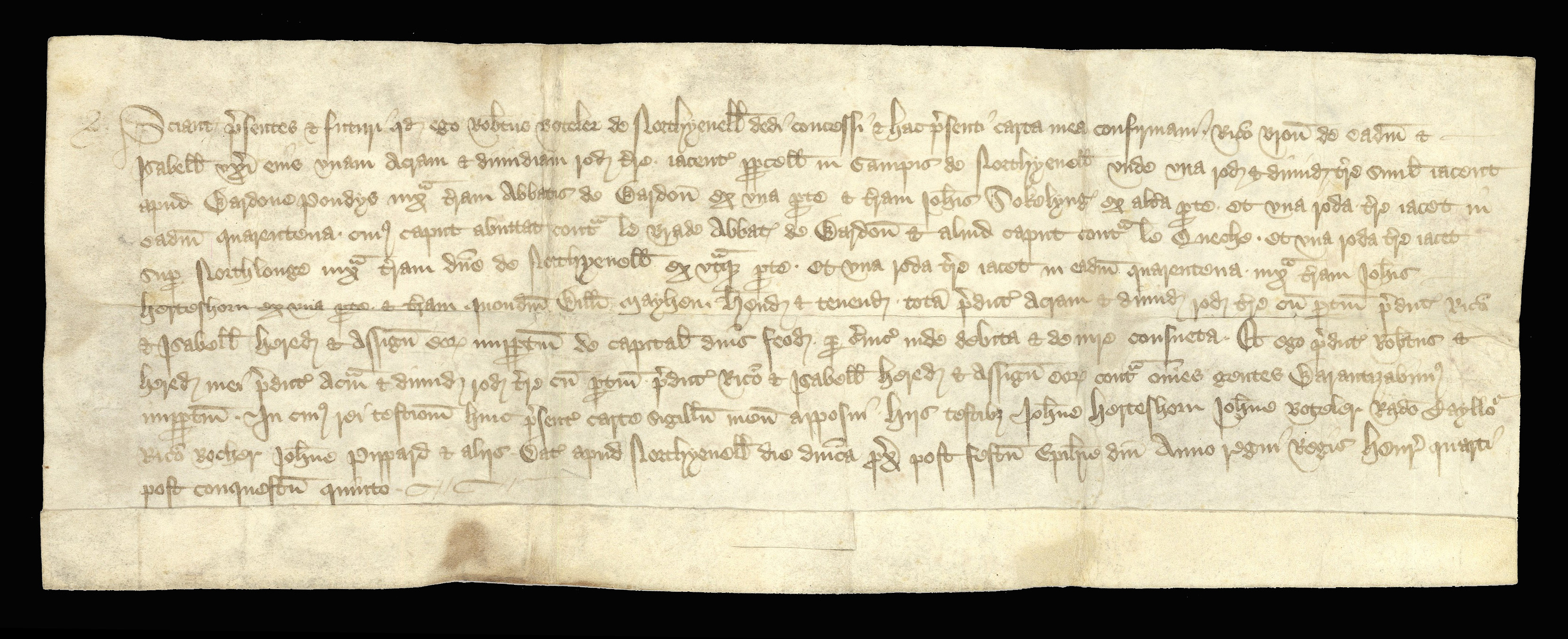 Let those present and future know that I Robert Boteler of Northyeuell' have given, granted and by this my present charter confirmed to Richard Bron' of the same and