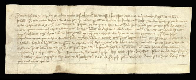 over Northlonge next to the land of the lord of Northyeuell' on either side and one rood of land lies in the same furlong next to the land of John