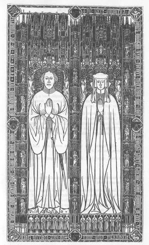 This great benefactor died in 1429 and was buried in All Saints Church, Newcastle. On his altar tomb was placed this splendid Flemish Brass with its beautifully engraved figures of Roger Thornton and his wife Agnes. Numerous effigies of Apostles and Saints with their various symbols are also shown.